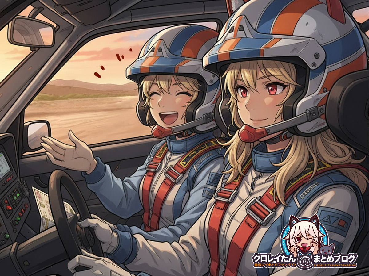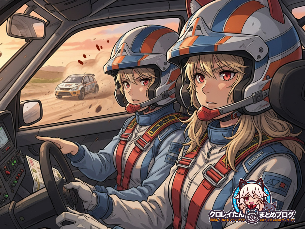 コドライバー(ラリーレースで助手席で走行をサポートする役割の人)が同乗しているのは、なにもナビゲーションだけじゃなくて、時間管理やコース状況の確認、現地で車両メンテンスなどのドライバーが安全に早く走行できるサポートを行っているんだよ。
