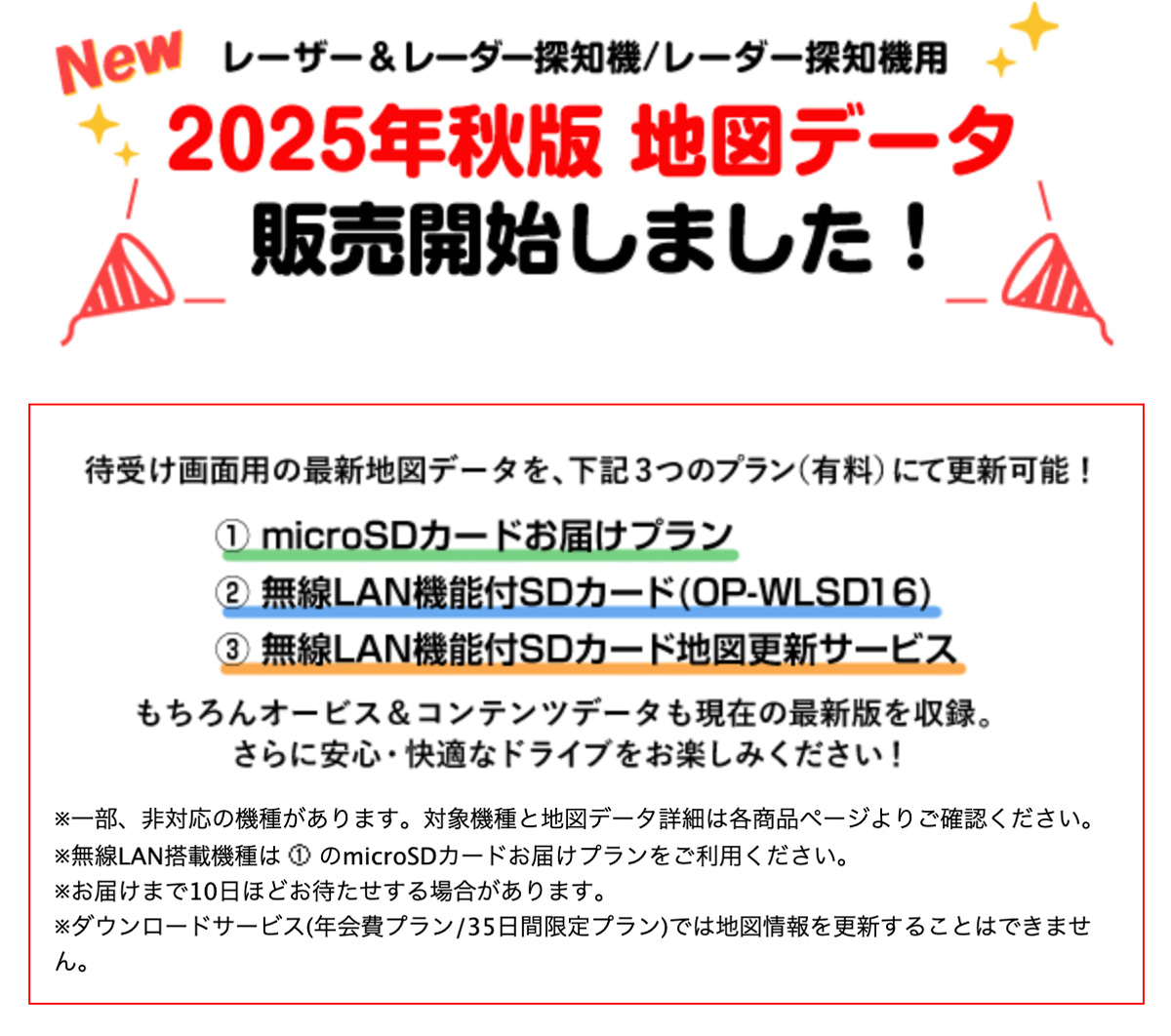 2025年12月12日に、ユピテルさんのレーザー&レーダー探知機「SuperCat」シリーズ用に「2025年秋版地図データ」が販売されました(・x・)ノ
