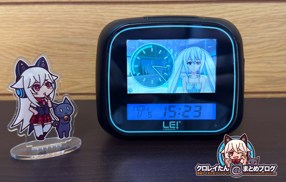 「Lei Clock」は、目覚まし時計とタイマー機能と時報機能に対して、それぞれ霧島レイが音声と映像で反応してくれる、置き型キャラクター目覚まし時計です。