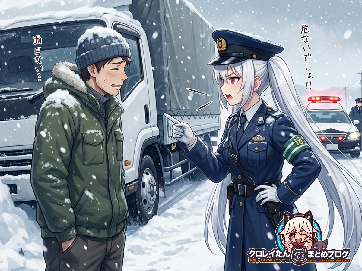雪道での防滑措置(スタッドレスタイヤやチェーンの装着)を守らない場合、多くの自治体で法令違反(都道府県公安委員会遵守事項違反)となります。