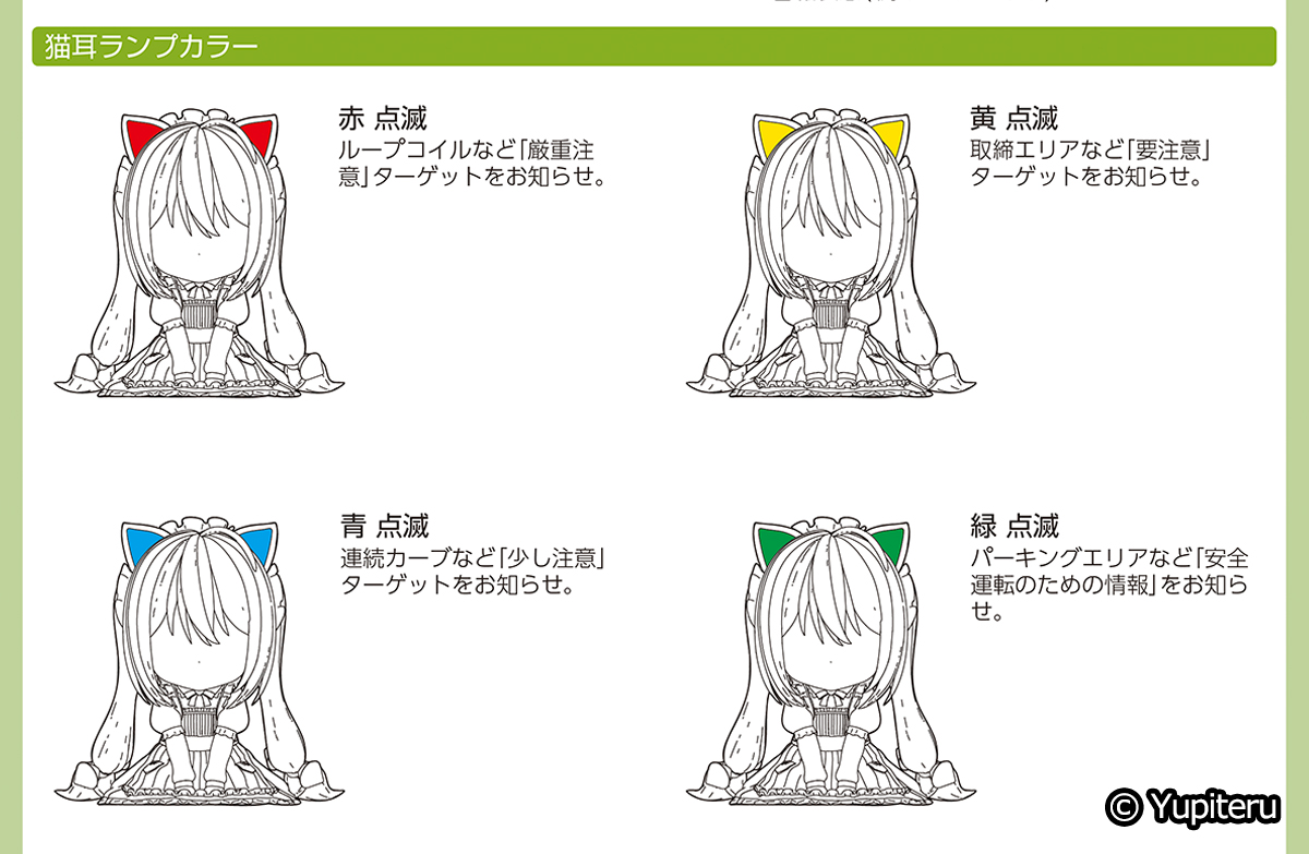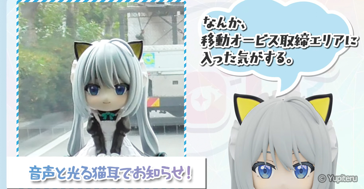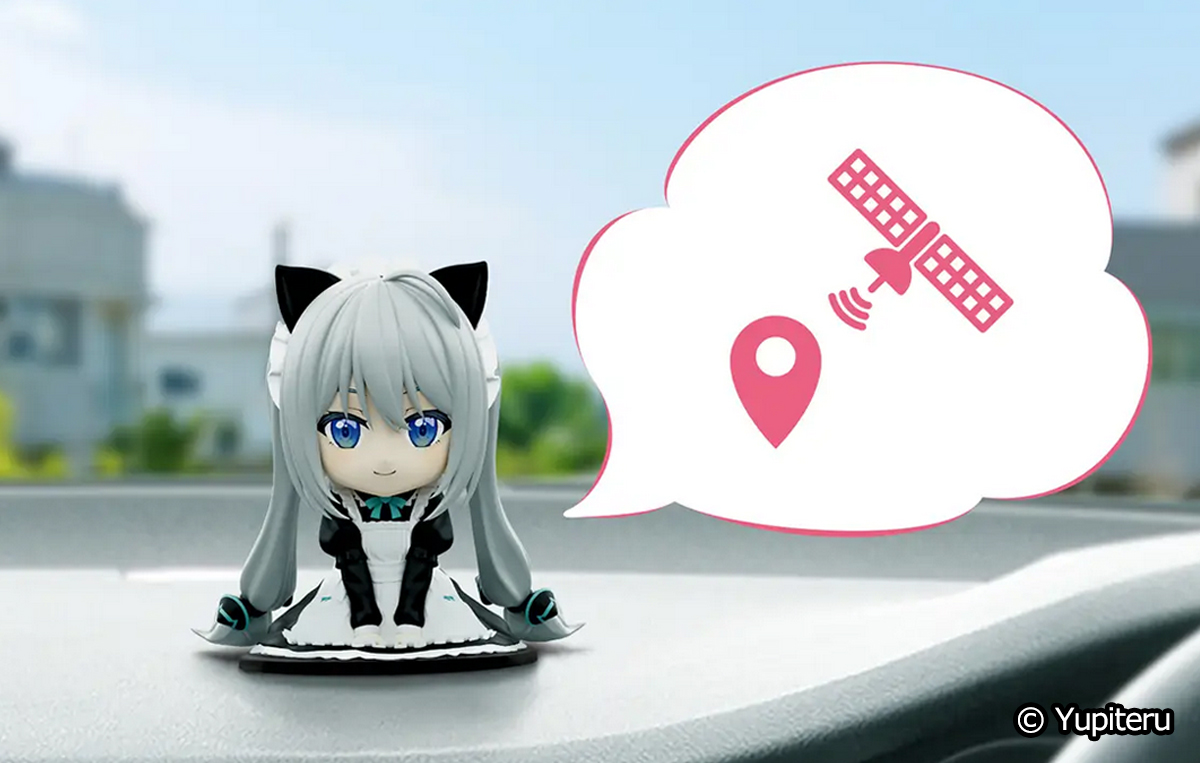 ぱっと見た感じは、可愛いメイド衣装のちびレイのフィギュアですが、GPSレシーバーが搭載されており、音声アナウンスによる運転中のサポート゚をしてくれます。