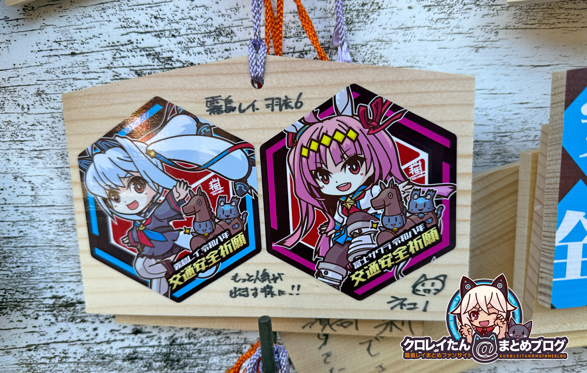事前に持ってきていた、霧島レイ交通安全祈願オリジナルステッカーを使って、現地即席で追加絵馬を用意してみました(*´ω`*)