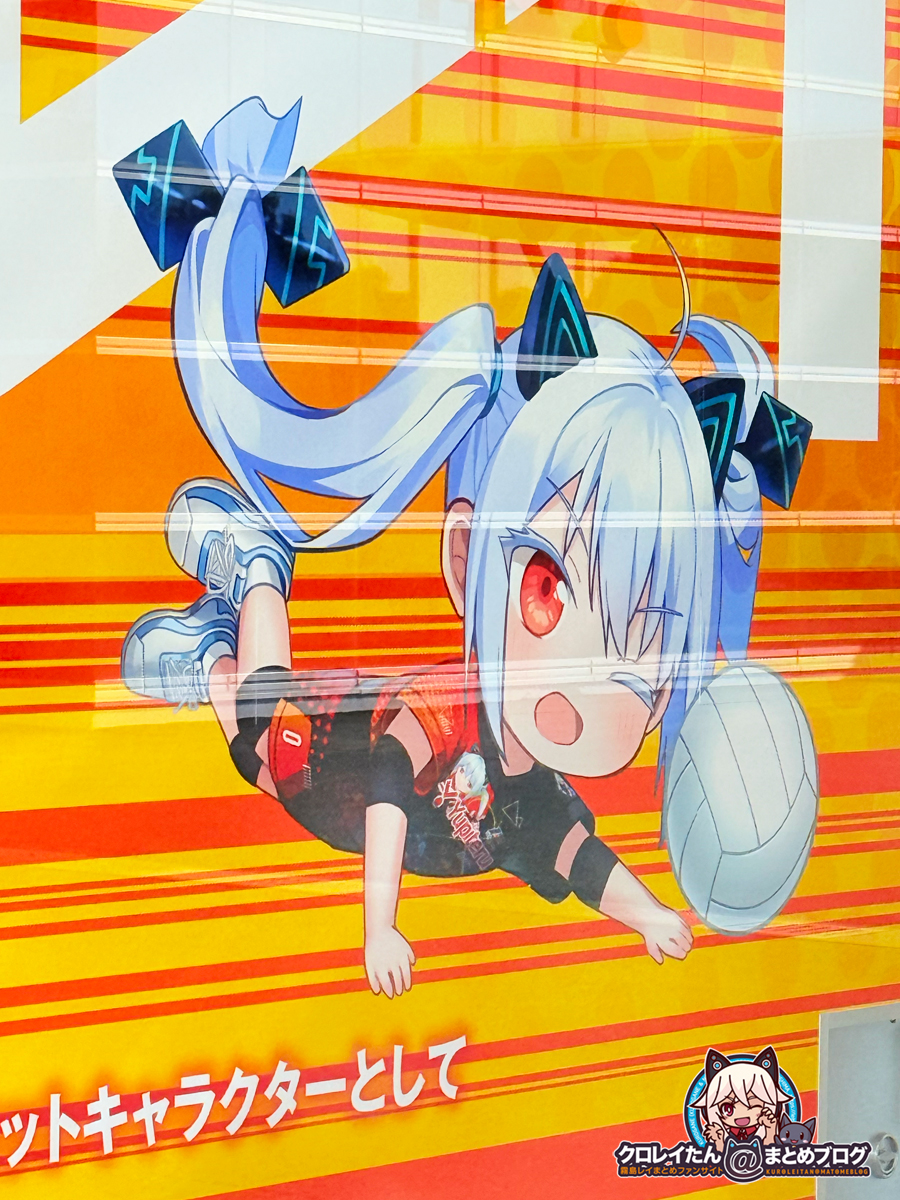 以前のスパイク放つ前の迫力あるイラストでしたが、今回はスパイクを決めている瞬間のまた迫力ある構図で格好良く描かれています。さらにフライングレシーブを決めているちびレイ(変身ver.)のイラストも可愛いですよね(*´ω`*)