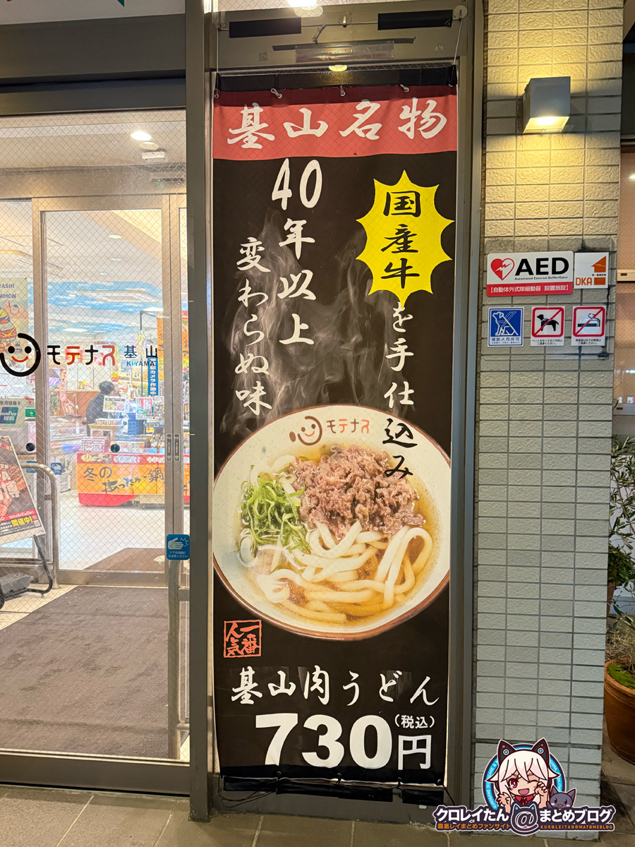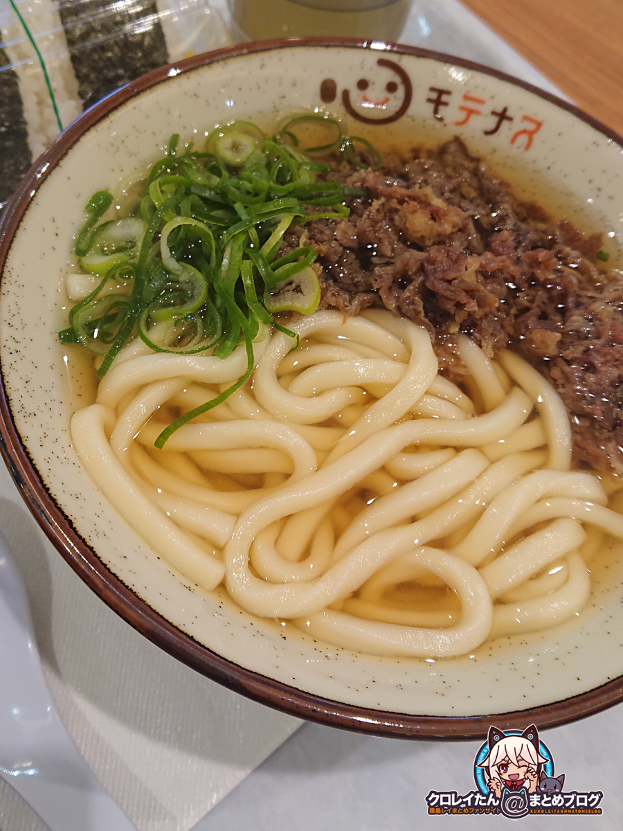 ここのフードコートで注文できる「肉うどん」と「かしわうどん」がオススメ。