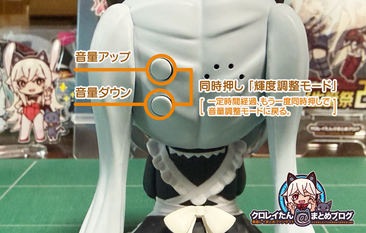 ちびロイドの特徴として、フィギュア後頭部に「ボリューム調整ボタン」があります。