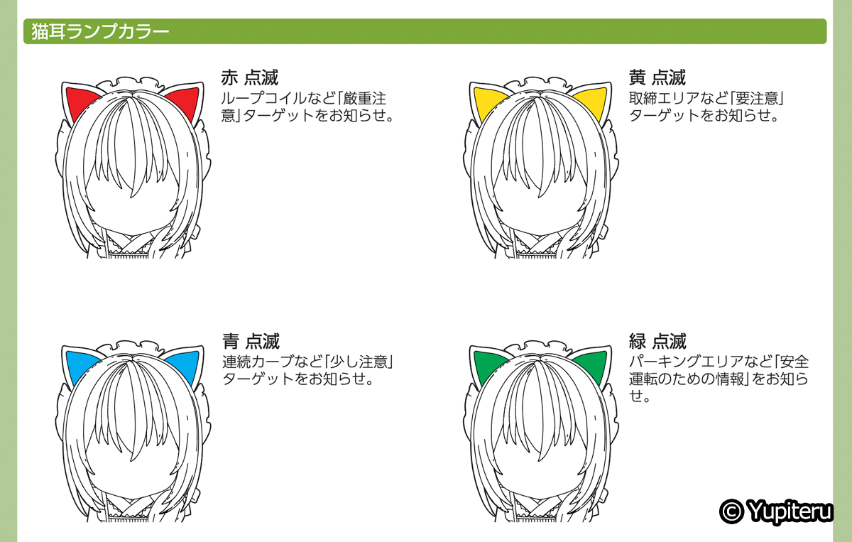 発信する情報次第で、猫耳が4種類のカラーバリエーションで点灯します。