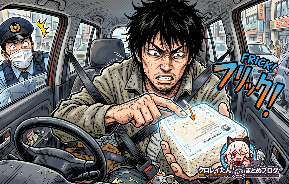 こちらは「ながら運転」として見た際に「おにぎり」と「スマホ」どっちが危ないか??の論争も含めた記事内容になっています(*´ω`*)
