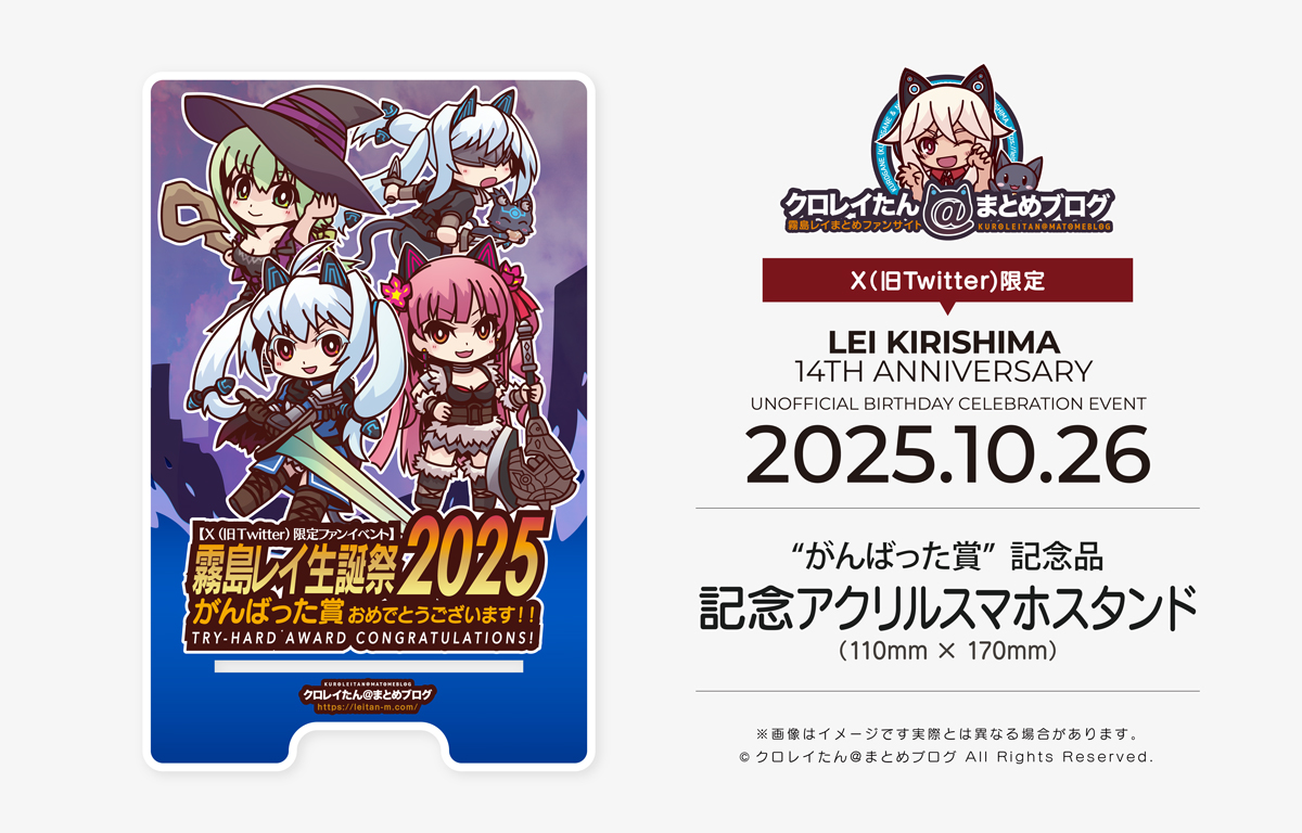クロレイたん@まとめブログさん @kuro_leitan が主催された霧島レイ誕生祭2025の参加賞に当選しました。